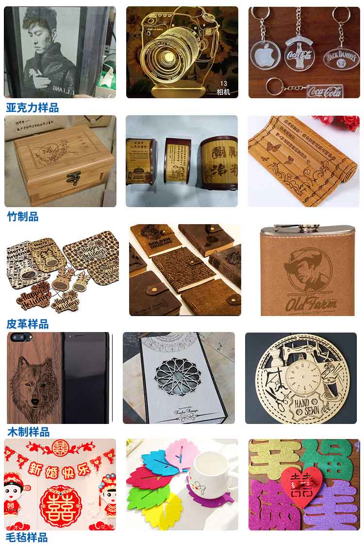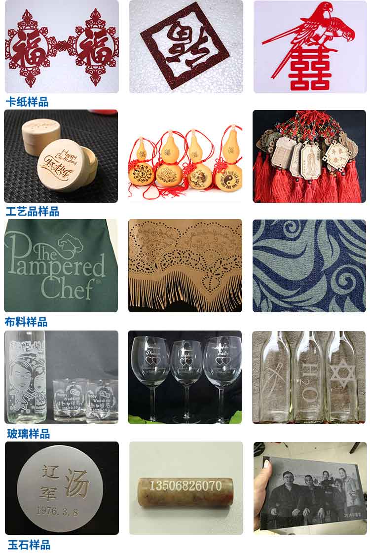 可雕刻竹木制品、紙張、皮革、毛料、布皮、亞克力、橡膠版、硅膠板、PVC、PET、環(huán)氧樹脂、瓷磚、大理石、水晶、玉石、等非金屬材料。