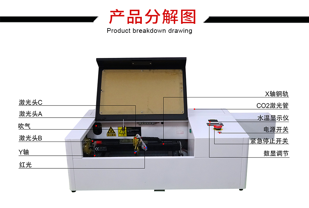 50W出口豪華版(彩屏脫機)配置:雙軸直線鋼軌軌道 50W正品北京艾普龍激光管(保證正品,假一賠十)數(shù)顯電流顯示表,帶有水溫顯示,雙急停開關(guān),升降夾具平臺,吹氣阻燃系統(tǒng),紅外定位,蜂窩網(wǎng)狀平臺,工業(yè)級激光頭,乾城彩屏脫機系統(tǒng)(支持CoreLaser、CAD直接輸入轉(zhuǎn)換輸出)支持分層分色輸出,斷電續(xù)雕 雕刻+切割一次完成,U盤傳輸文件加工,脫機工作。